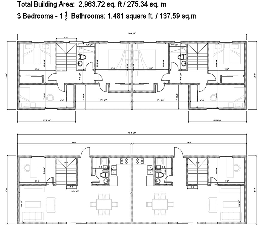 3 Bedrooms – 1 1/2 Bathrooms: 1.481 square ft / 137.59 sq.m