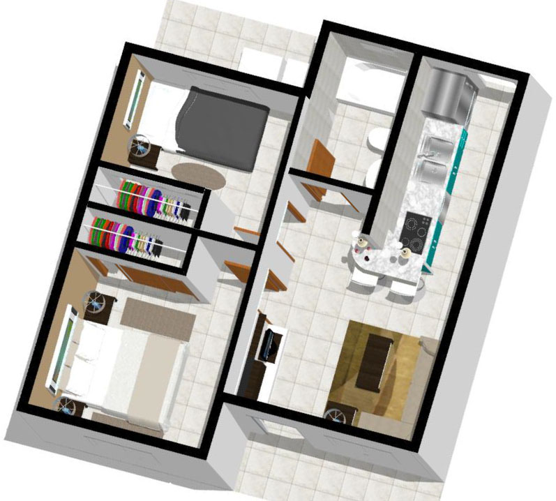 2 Bedrooms – 1 Bathroom