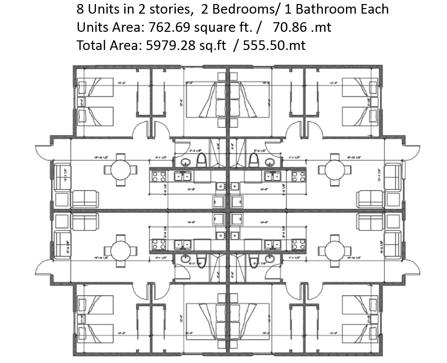 8 Units in 2 stories, 2 Bedrooms/ 1 Bathroom Each