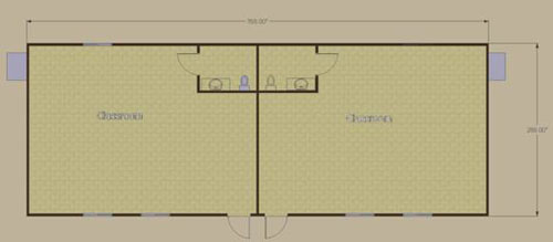 Floor Plan Option A – Each Classroom has as a total area of 658 sq. ft / 61.13 sq. mt