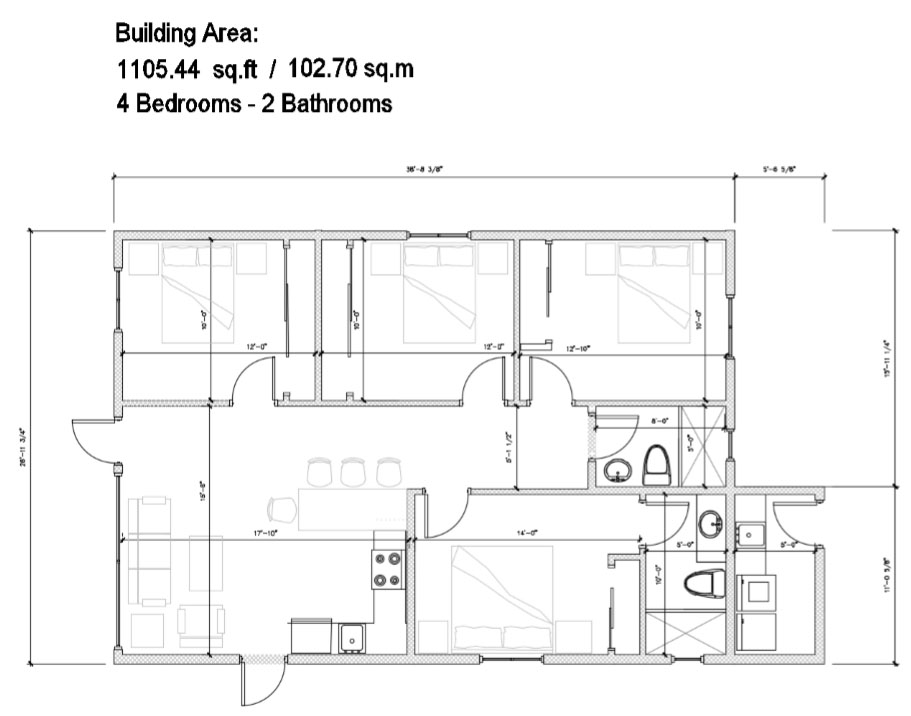 Building Area: 1105.44 sq.ft. / 102.70 sq.m.